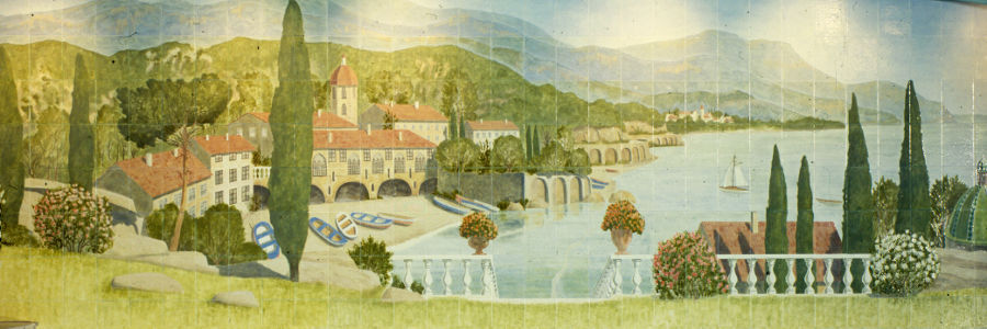 Malerei auf FliesenDiese jahrhundertealte Tradition, ganze Wände mit handbemalten Fliesen zu schmücken, die man in Portugal, Spanien und anderen südlichen Ländern bewundern kann, ist bis heute unübertroffen. Die eingebrannte Glasur trotzt den ungünstigsten Witterungsbedingungen und übersteht auch im Schwimmbad unbeschadet den Einfluss von Feuchtigkeit und Chemikalien. In langjähriger Praxis entwickelten wir diese exklusive Gestaltungstechnik so, dass heute unsere Fliesenbilder auch mit weitgehend unsichtbaren Fugen verlegt werden können. Auf Fliesen zaubern wir antike Malereien, traumhafte Mittelmeer-, Südsee-, Wüsten- oder Alpenlandschaften, lassen Schmetterlinge und Papageien fliegen, schillernde Fische sich im Meer tummeln und vieles mehr; An Exklusivität, Lebensdauer, Widerstandsfähigkeit und zudem einfacher Pflege sind Fliesenbilder daher nicht zu überbieten und bestens geeignet für Bäder und Schwimmhallen. Fliesen bieten im Bad immer noch die beste Möglichkeit, Wände auf schönste Weise zu schützen. Träger der Fliesenmalerei sind weiß- oder braunscherbige Fliesen, Größe 15x 20, oder 20 x 25 cm. Jede Fliese wird einzeln nummeriert und zu einer Fläche zusammengelegt. Die so vorbereiteten Fliesen werden mit einer Spezial- Glasurgrundierung beschichtet. Nach der Übertragung der Zeichnung werden die Bilder in mehreren Schichten mit Spezialglasuren handbemalt. Nach dem erstmaligen Brand (bei ca. 800 - 850°C) werden die Fliesen erneut aufgebaut und partiell mit Glasuren ausgebessert, bzw. farbig intensiviert. Dann erfolgt der zweite Brand, öfter auch ein dritter. Das Bild wird im "Dünnbettverfahren" verlegt und verfugt. Die Oberfläche weist ein feines Relief auf, wirkt lebendig und unterscheidet sich grundlegend von den industriell gefertigten Fliesen. Die Oberfläche der Fliesen ist kratzfest, gegen Laugen und Säuren resistent, schwach glänzend und pflegeleicht. Die Wandmalereien werden eigenhändig von Vladimir Hrubes in seinem Atelier ausgeführt. Jede Arbeit ist ein Unikat!